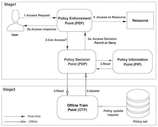 - Enhance access control decision-making based on the attribute-based access control (ABAC) model to solve the abovementioned problems. In particular, a permission determination engine based on machine learning is proposed. The authorization request for PDP issues is classified as a binary classification either authorized or denied.