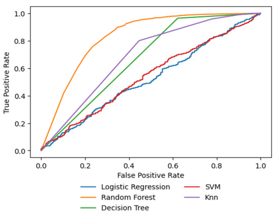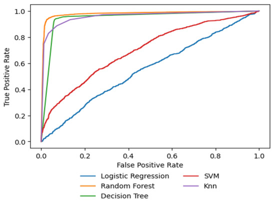 Based on the experimental results illustrated in Figure 4 and Figure 5, it can be concluded that the receiver operating characteristic (ROC) curve is unchanged with the dissemination of the sample group. Consequently, the performance (ROC) of the algorithms was poor prior to the data balancing method. Furthermore, the k-nearest neighbours algorithm (KNN) and support vector machines (SVM) algorithms cannot provide an optimal and accurate access decision response in the PDP during access control. Following data processing (the balancing phase), the overall performance of the proposed algorithms improved. As seen in Table 3, the random forest (RF) algorithm evidenced an ideal AUC of 0.98. This approach enhances PDP’s access control capabilities in response to access requests. This shows that the (RF) algorithm successfully implemented parallelism, effectively resolving issues caused by competing policies. It helped to alleviate the problem of bottlenecking in the decision-making process by working in a distributed manner.These advantages significantly improved the overall security of the access control system.
