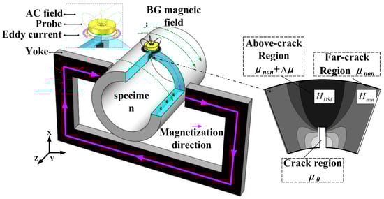 - Deng, Z.; Yu, Z.; Yuan, Z.; Song, X.; Kang, Y. Mechanism of Magnetic Permeability Perturbation in Magnetizing-Based Eddy Current Nondestructive Testing. Sensors 2022, 22, 2503. [Google Scholar] [CrossRef]