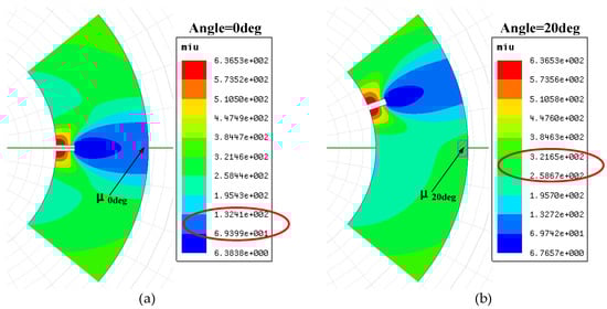 Schematic diagram of permeability distribution. (a) shows the MPP distribution of defects when the pipe is 0 degrees. (b) shows the MPP distribution of defects when the pipe is rotated to 20 degrees.
