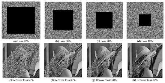 Our proposed encryption system has demonstrated superior performance when it comes to dealing with cipher data contamination that includes both data loss and noise. To test this, we applied 50%, 25%, 10%, 1.25%, and 0.5% noise to an encrypted Lena image and attempted to recover the original image. Our encryption system performed exceptionally well in the recovery process, highlighting its effectiveness in preserving the integrity and quality of encrypted data even in the presence of noise and data loss of less than 50%. We also tested our proposed encryption approach on encrypted images that experienced data loss, with the aim of recovering the original images. The test was conducted to measure data loss at different rates: 50%, 30%, 20%, and 10%.. Through our testing, we found that our encryption system was effective in reconstructing the original images from the cipher data, even when the encrypted images had experienced data loss of less than 30%. This underscores the robustness and reliability of our proposed encryption approach, which can be valuable in situations where the encrypted data are vulnerable to loss or corruption. See Figure 15 for noise effects and Figure 16 for data loss.