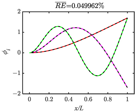 A semi-analytical demonstration was conducted to illustrate the present verification problem for the reader. In this case, the cantilever beam was discretized using a single Euler–Bernoulli element. Although such a small number of elements does not achieve convergence and the stability of the results, it shows a step-by-step demonstration of the methodology. An example can be found in the Supplementary Material.