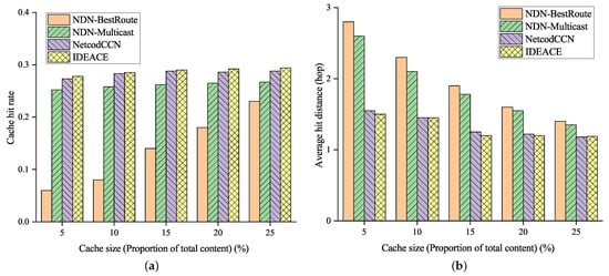 Transmission performance under different cache sizes. (a) Average cache hit rate. (b) Average cache hit distance.