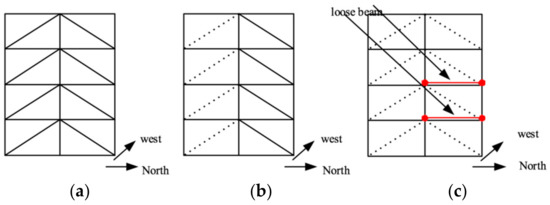 - All diagonal supports on the southeast side were removed (damage mode 1);