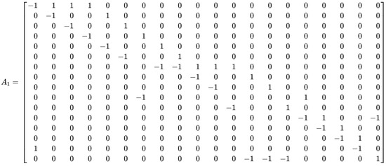 At the first step of the algorithm a unit matrix given as is formed, while is equal to the identity matrix. During the subsequent stages, algorithm searches for the place invariants that form proper SMCs. Such operations are executed within steps 2–4, until set (of all found SMCs) cover all places of the Petri net. For the given example, this condition is fulfilled at the 15th iteration (examination of 15th transition). The following place invariants are obtained: