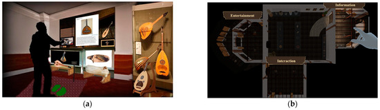 Figure 1 and consists of three subsystems: (1) the Information Subsystem (provides audio tracks and informative text), (2) the Entertainment Subsystem (provides a 3D gesture-based serious puzzle game and gamification elements), and (3) the Interaction Subsystem (provides the user interaction with an exact 3D-printed replica of a traditional musical instrument).