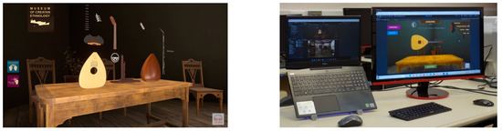 https://www.ultraleap.com, accessed on 22 January 2023), with which the system captures and interprets the user’s gestures (hands and fingers). For the user’s convenience, virtual hands are also placed in the 3D space (