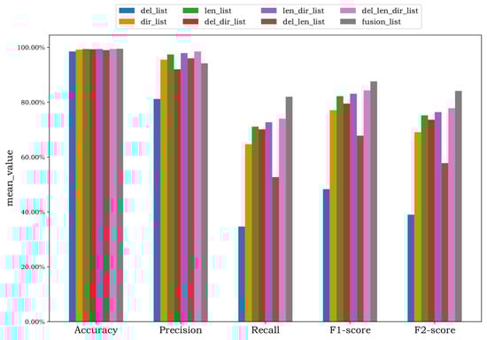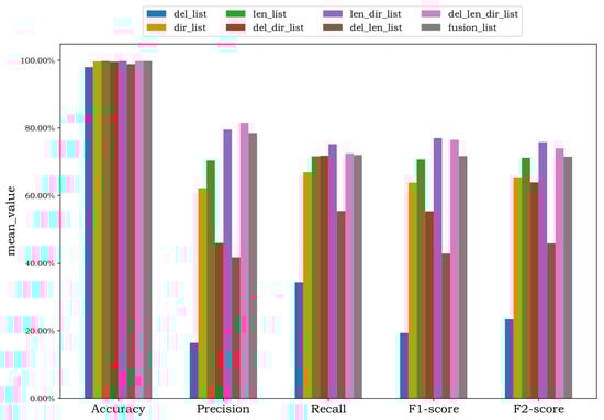 From the view of practice, we aim to detect malicious traffic as much as possible, so the false negative rate and Recall can better reflect the effectiveness of the detection model. According to Equations (4) and (5), compared with F1-score, F2-score increases the weight of the Recall and can better represent the overall detection effect of the model.