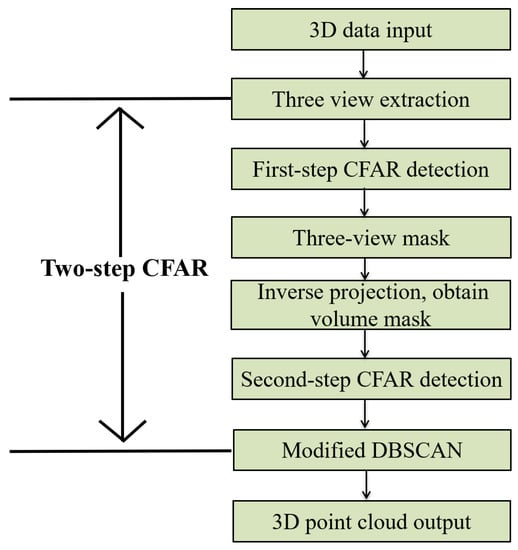 Flow chart of two-step CFAR CS-GBSAR 3D point cloud extraction method.