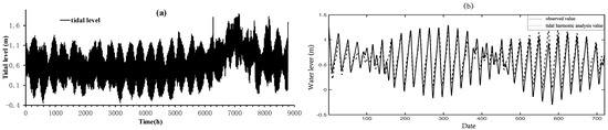 Tidal level and harmonic analysis recorded at Gangbei Town tidal level Station ((a) tidal level; (b) harmonic analysis).
