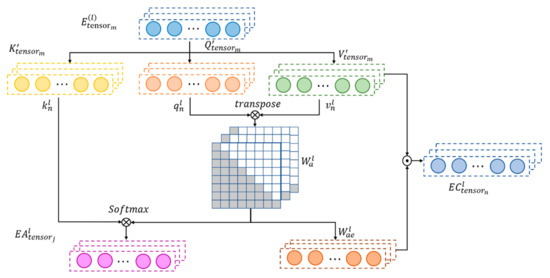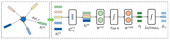 Obtain the final node weight . As shown in Equation (27), the single relationship state variable temporarily records the impact of all adjacent nodes on the state transition of the target node in the relationship r: