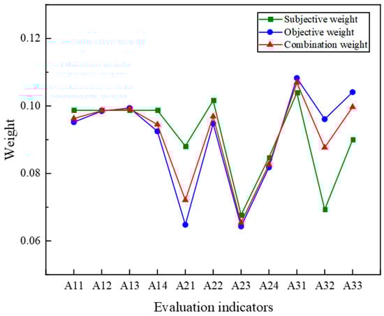 In the evaluation of multiple indicator items, evaluation weights play a decisive role. In the same evaluation, if different weight values are used, it may cause great differences. Therefore, how to correctly determine the weights in the evaluation is a key factor in improving the evaluation. In practice, the role of evaluation factors is objective, and many indicators are now also determined by subjective will. Therefore, the weights of subjective and objective factors must be considered comprehensively so that their importance can be fully reflected [,,].