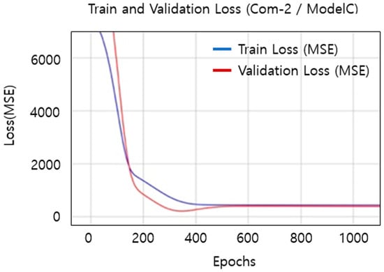 As a result, compared to using general building properties or BIM properties independently to predict construction costs, it is expected that predicting construction costs by combining them can increase accuracy. The results are shown in Table 9. Additionally, in the case of Com-2, which had the lowest error rate, the training results of Model C are shown in Figure 6.