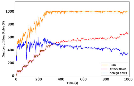 - Zhang, M.; Bi, J.; Bai, J.; Dong, Z.; Li, Y.; Li, Z. FTGuard: A Priority-Aware Strategy Against the Flow Table Overflow Attack in SDN. In Posters and Demos, Proceedings of the SIGCOMM 2017, Los Angeles, CA, USA, 21–25 August 2017; Burke, J., Wählisch, M., Zhang, N., Meyer, D., Sharma, P., Eds.; ACM: New York, NY, USA, 2017; pp. 141–143. [Google Scholar] [CrossRef]