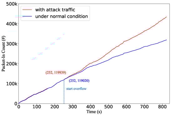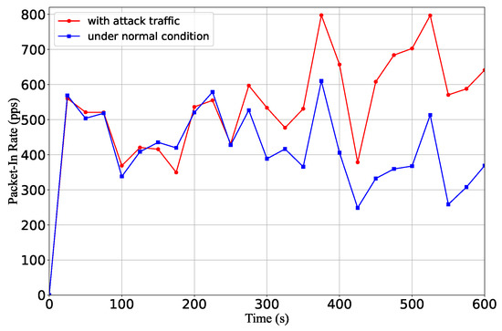 The packet-in rate with and without the attack traffic.