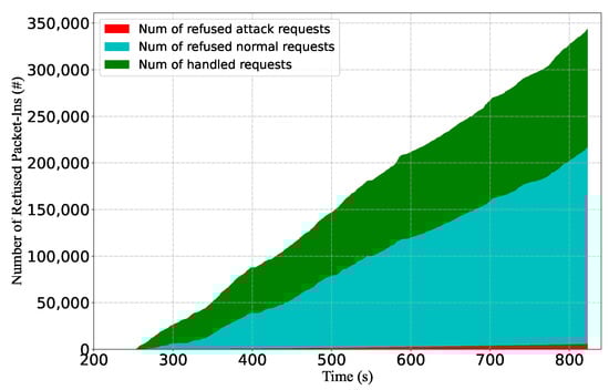 - Ran, L.; Cui, Y.; Guo, C.; Qian, Q.; Shen, G.; Xing, H. Defending saturation attacks on SDN controller: A confusable instance analysis-based algorithm. Comput. Netw. 2022, 213, 109098. [Google Scholar] [CrossRef]
