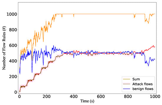 - Xu, J.; Wang, L.; Song, C.; Xu, Z. Proactive Mitigation to Table-Overflow in Software-Defined Networking. In Proceedings of the 2018 IEEE Symposium on Computers and Communications (ISCC), Natal, Brazil, 25–28 June 2018; pp. 00719–00725. [Google Scholar] [CrossRef]