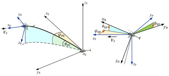 where and are the Euler transformation matrices relative to the respective y- and z-axes. , is a displacement variable, and is the scalar of the flight velocity, i.e., .