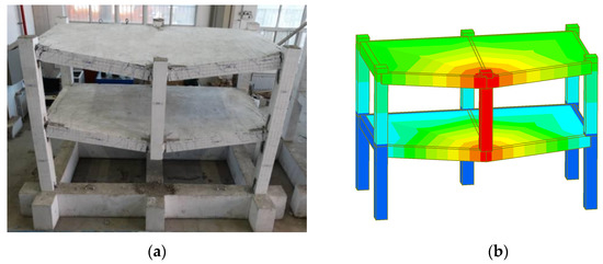In the planar irregular structure, according to the relevant provisions of GSA2003, the influence of the failure of the bottom column that is located at the concave corner of the planar irregular structure should be investigated [6]. According to relevant studies, the failure of the column at the outer convex corner can easily cause the progressive collapse of the structure [23]. Therefore, the test simulation was carried out by removing the column at the outer convex corner on the first floor and the column at the concave corner on the first floor.