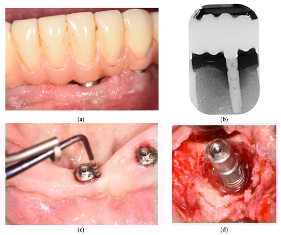 - Austoni, C.; Azzola, F.; Cavalli, N.; Morandi, P.; Francetti, L. Implantoplasty associated with the regenerative treatment of peri-implantitis. Dent. Cadmos 2019, 87, 262–269. [Google Scholar] [CrossRef]