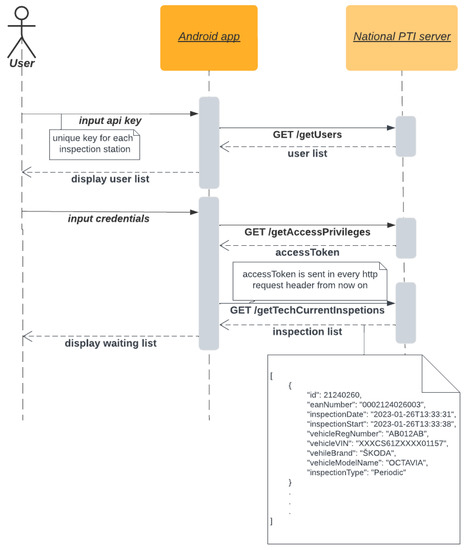 Figure 3). There are two ways to connect a mobile application to the server: using a local Wi-Fi network or mobile data. The second option is advantageous, especially for inspections of agricultural vehicles that are performed outdoors or at the owner’s location.
