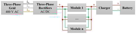 The application under study consists in supplying a fast charger of an electric vehicle from the electrical network provided by the energy distributors. Furthermore, it is assumed that there is power bidirectionality. Figure 10 shows the generic block diagram that summarizes the various elements inherent to the application.