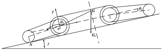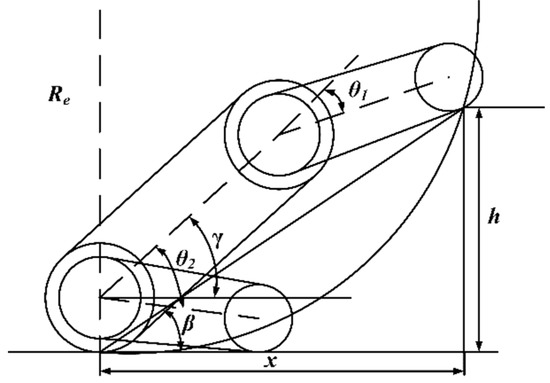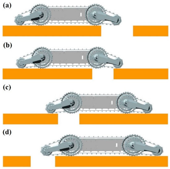 - We studied the geometric relationship between the robot’s center of mass and the ditch during the ditch-crossing process, and we concluded that the maximum passable ditch width is 388.05 mm.