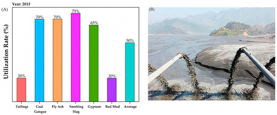 (A) Utilization rate of mining waste in 2015; (B) Tailings discharge.