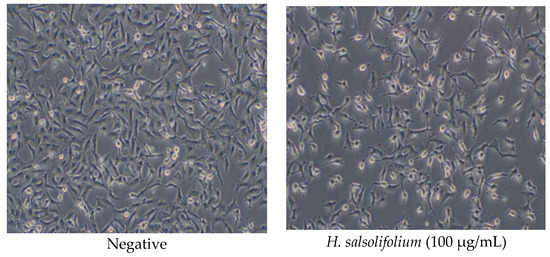 H. salsolifolium at a concentration of 100 μg/mL and AO/EB staining images were examined to detect morphological changes in cells and apoptotic cells after 24 h.