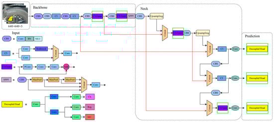 The decoupling head separated the classification and localization branches, reducing the number of parameters and calculations needed in the model and greatly speeding up the training and inference speed, improving the model’s perception ability for target features of different scales and, thus, improving the model’s robustness and accuracy while reducing the occurrence of overfitting.