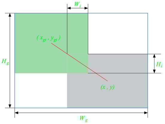 There are three versions of WIoU, among which WIoUv1 constructs an attention-based bounding box loss and WIoUv2 and WIoUv3 are obtained by adding a gradient gain to the focus mechanism on the basis of v1. In Figure 6 [], the green rectangle indicates the annotation box, the gray rectangle indicates the prediction box, and the blue rectangle indicates the minimum bounding box.