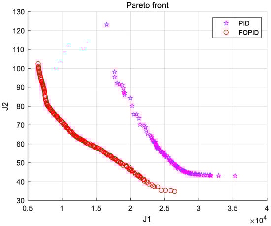 Comparison of Pareto front between PID and FOPID.