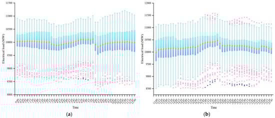 Traditional forecasting methods use the overall historical load numbers as their basis [,,,,]. The trend extrapolation predicts future loads based on the historical trends of the predictor variables. It predicts near future loads with high accuracy, but error gradually increases with time. The regression analysis method predicts future load changes by establishing a functional relationship between variables. It has high fitting ability but has a large error in predicting future changes. Time series extrapolation (the autoregressive moving average model) approximates a nonlinear relationship with a linear equation []. The grey forecasting method performs correlation analysis by identifying the degree of dissimilarity in development trends between system factors. Traditional forecasting models have a relatively simple structure and require highly accurate historical data, resulting in forecasting results with poor accuracy.