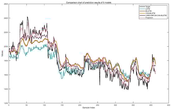 Comparison chart of the prediction results of 5 models.