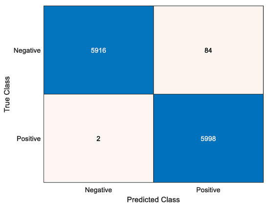 Confusion matrix with concrete crack images dataset (overall accuracy = 99.3%).