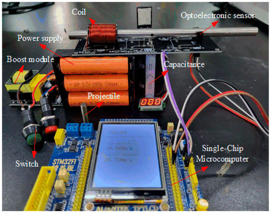 Electromagnetic launchers are currently under the spotlight of military studies as they surpass mechanical and chemical launchers because of their high initial speed, long range, good controllability, low cost, fast response speed, and silent, light- and smoke-free emission [1,2,3]. A synchronous induction coilgun (SICG) is a popular type of electromagnetic launcher. It is mainly composed of a driving coil, a driving circuit, a pulse power source, and a projectile. It uses the magnetic traveling wave generated by the pulse to accelerate a projectile. By simply increasing the number of drive coils, an SICG can accelerate large-mass loads to very high speeds, which makes it a hot topic of research [4,5,6].
