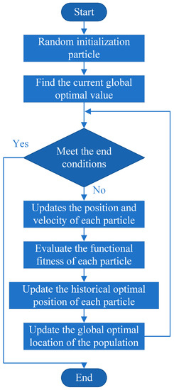 The flowchart of the PSO algorithm.