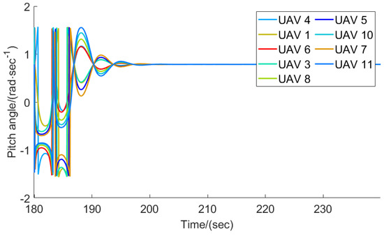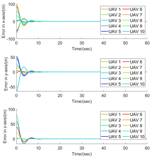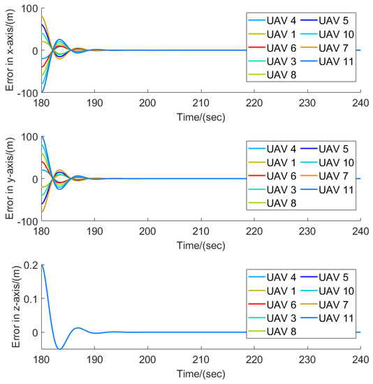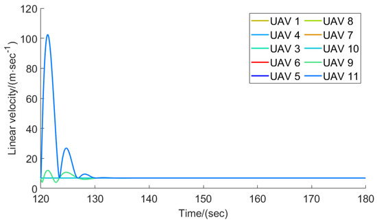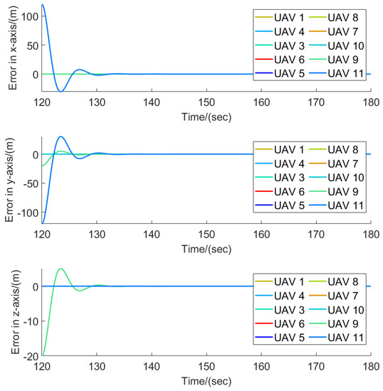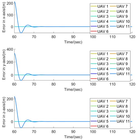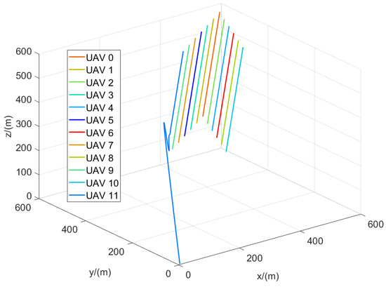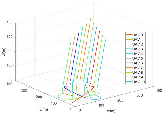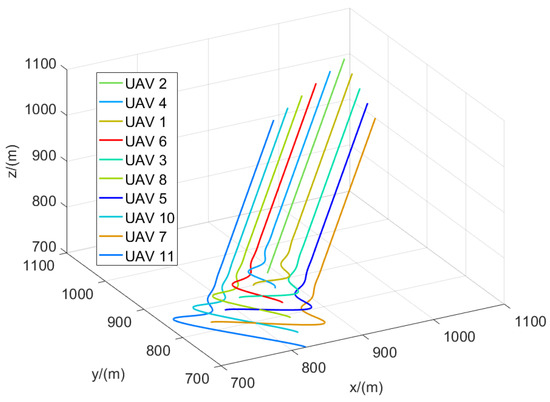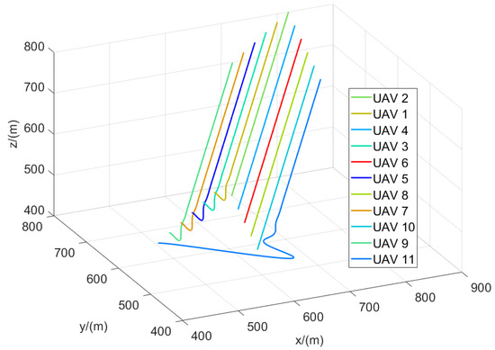 The flight trajectories of the leader–follower multi-UAVs when .