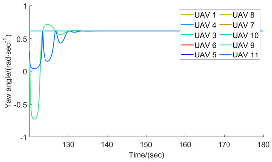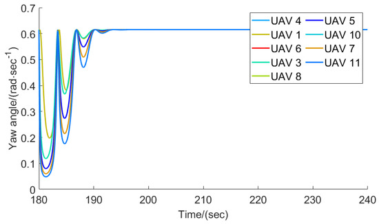 The yaw angle for each follower when .
