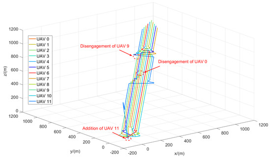 | Disengagement of UAV 0 | UAV 8 | UAV 7 | UAV 10 | UAV 9 | UAV 11 | |