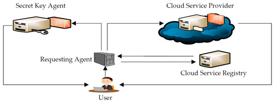 The Requesting Agent (RA) is a server that is responsible for receiving requests from users and forwarding them to both the Cloud Service Provider and the Secret Key Agent after authenticating users. It is the point of contact through which users send requests to store or access information stored on the cloud. Users are authenticated and their access rights are identified before requests are forwarded by the RA. In other words, it plays the role of the gatekeeper who does not allow unauthorized users to access the system. The RA has a limited communication channel with the users, a one-way communication channel with both the Cloud Service Provider (CSP) and the Secret Key Agent (SKA), and a two-way communication channel with the Cloud Service Registry (CSR) for users’ authorization. The RA receives requests from users and only responds with information that is limited to confirmation of authentication.