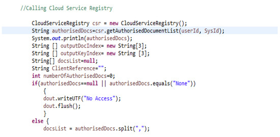The main component of the U-IDM paradigm is the Cloud Service Registry (CSR). The CSR plays a vital role in the proposed architecture. CSR provisions access information according to users’ privileges in the form of service level agreements (SLAs). Services in the context of the proposed architecture include the provision of access to patients’ information that is stored on the cloud. There are three information categories that require access rights from the CSR, which are All_V, Em_V, and OutP_V. As discussed earlier, each information category contains one or more documents. The CSR grants access to information categories by providing access to the documents that form these categories. Repeating the example of the Em_V category, it is a combination of doc-1 and doc-2. Therefore, granting access to the Em_V category requires the CSR to include the name of documents or their identifying tags with the user authentication confirmation. The CSR stores the names of categories and their comprising documents’ tags. A list of registered users is stored on the CSR. Each user has a record of information related to the information that they can access. Users are listed under the names of their organizations. Searching for a user requires knowing the organization he/she belongs to. Table 5 shows an example of users’ lists who are affiliated with an organization.