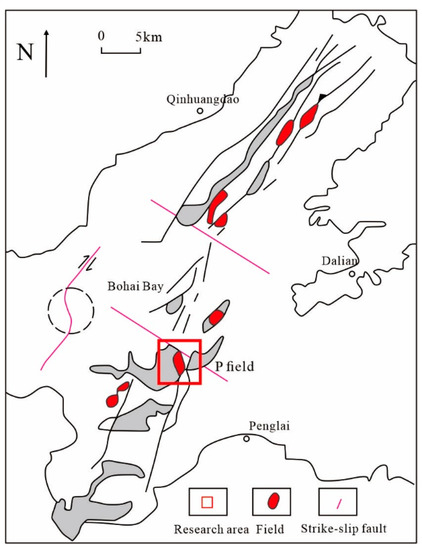 Taking the fluvial reservoir of the P oilfield in Bohai Bay as an example, this working area is located in the south of Bohai Bay, about 216.0 km away from Tanggu of Tianjin and about 80.0 km away from Penglai City of Shandong, as shown in Figure 2. The formation is located in Neogene Minghuazhen Formation, with 12 wells in the working area.