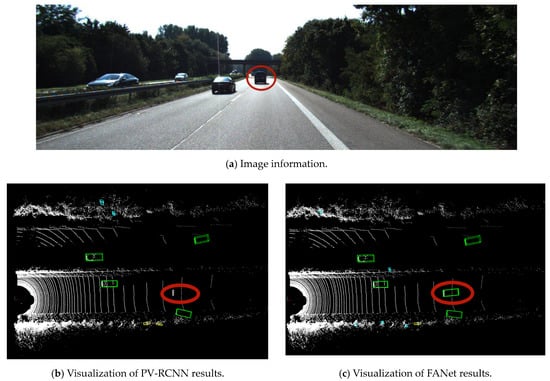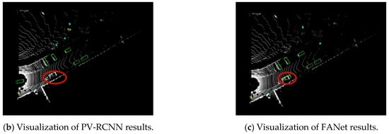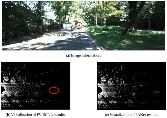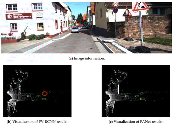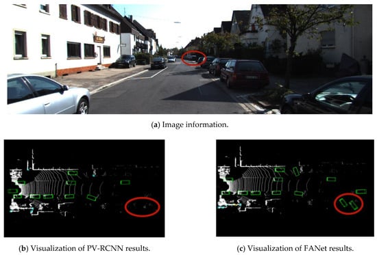 As shown in Figure 9, according to the image information, FANet can recognize the distant car in front, while PV-RCNN cannot accurately recognize it.