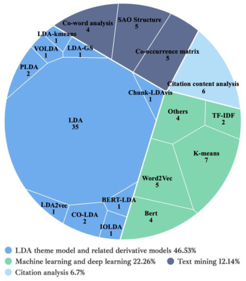 As shown in Figure 3, LDA and its derivative models are the most widely used in the research sample. Their specific applications are described and summarized in the following section.