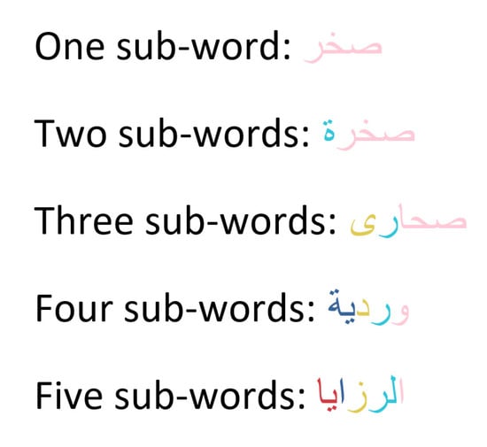Figure 5. Elucidation of how sub-words are formed in Arabic. - The total number of shapes is at least 81. Some letters share the same shape but differ in terms of dots;