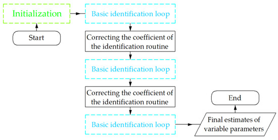 There are many computer-aided identification algorithms; for example, the Kalman filter, the model reference adaptive system, the least squares method, artificial neural networks, the genetic algorithm, the differential evolution algorithm, particle swarm optimization, etc. [27,34,35]. For example, in [34], the identification of LSPMSM parameters based on the time plots of current and speed during start-up using the differential evolution algorithm is discussed.