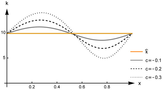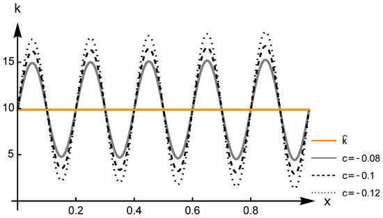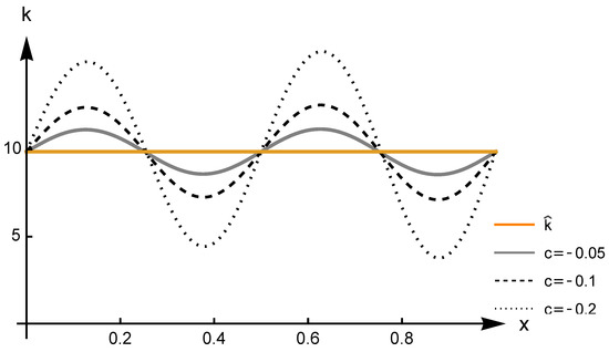 The isospectral composite beam has a shearing stiffness coefficient given by (39). The isospectral coefficients shown in Figure 2 have been derived for and , and . The initial uniform beam corresponds to . Similarly, isospectral coefficients for , with and and for with and are shown in Figure 3 and Figure 4, respectively.