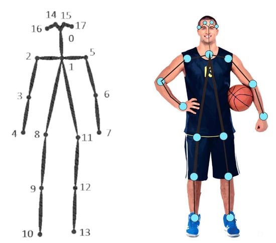 The OpenPose algorithm represents the latest advances in human pose estimation for static images. This two-dimensional pose estimation algorithm is highly effective at detecting multi-target human bodies in images [43]. One of its key advantages is its bottom-up approach, which allows it to efficiently identify and track individuals even in images with a large number of people [4]. At the heart of this algorithm is an explicit non-parametric representation of skeletal joint point associations that encodes the orientation and position of human limbs [44]. This representation is used to detect jointly learned body parts and to identify associations between them. The algorithm also employs a set of frameworks for detecting body part associations and employs greedy analysis algorithms to estimate human body pose accurately [45]. Taken together, these features enable OpenPose to achieve outstanding performance in human pose estimation [46]. The algorithm’s ability to detect multiple individuals in a single image, its high accuracy, and its versatility make it a valuable tool for a wide range of applications, including computer vision, robotics, and human-computer interaction.