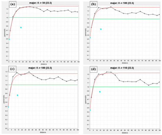 Kriging uses the variogram model to quantify the autocorrelation pattern in the research region [30]. The variogram is produced by taking the average of the semi-variances, which are computed as follows for each combination of locations and distance bin, and then plotting the results: